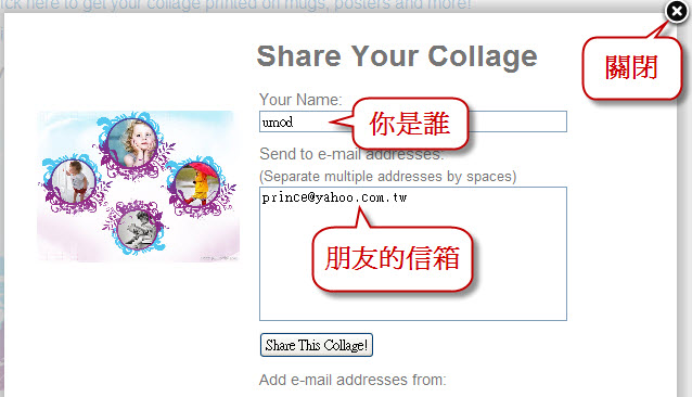 如果想把完成品送給朋友,網站可以幫你寄 Email