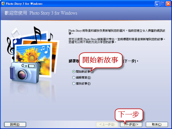 安裝好,打開Photo Story軟體,按下開始新故事吧!